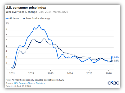 However, the stimulative effect of larger refunds will be blunted to some degree by higher energy costs now, and possibly higher overall prices later in the year. The annual inflation rate rose to 3.3% in March, pushed by a 10.9% surge in energy costs. When we strip out food and energy (called Core CPI), the inflation rate remained a relatively tame 2.6%.