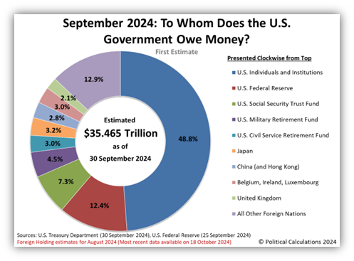 Currently, less than 25% of our $38.6 trillion national debt is owned by foreign countries.