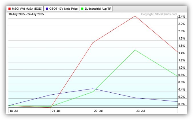 Next week, all eyes will be on Europe as the August 1st deadline for a trade agreement looms. If a deal cannot be reached before then, a sweeping 30% tariff on European imports will go into effect. That would trigger a European response on August 7th, with increased tariffs targeting American imports like Harley-Davidson motorcycles, poultry, jeans, bourbon whiskey, chemicals, cars, aircraft, and aircraft parts.